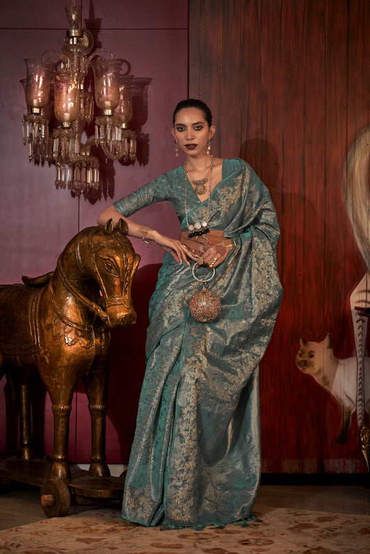 Devika Green Blue Silk Saree