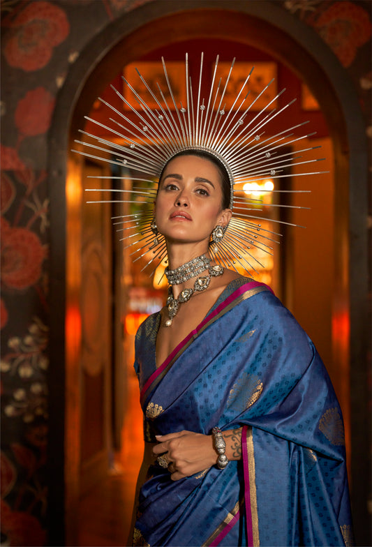 Nayantara Navy Blue Pichwai Satin Silk Saree