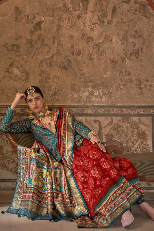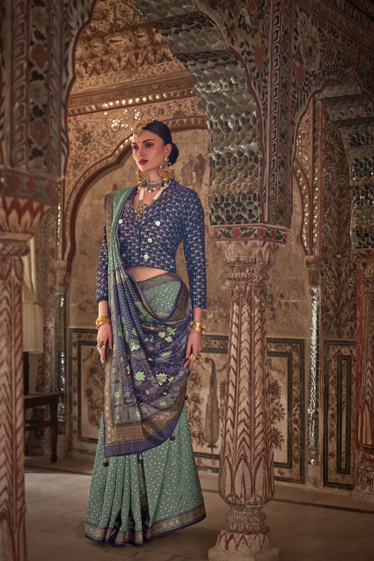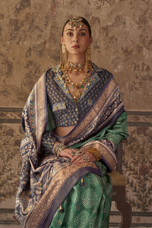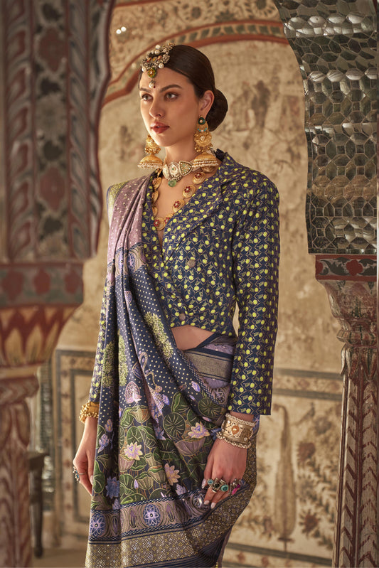 Nayantara Navy Blue Pichwai Satin Silk Saree
