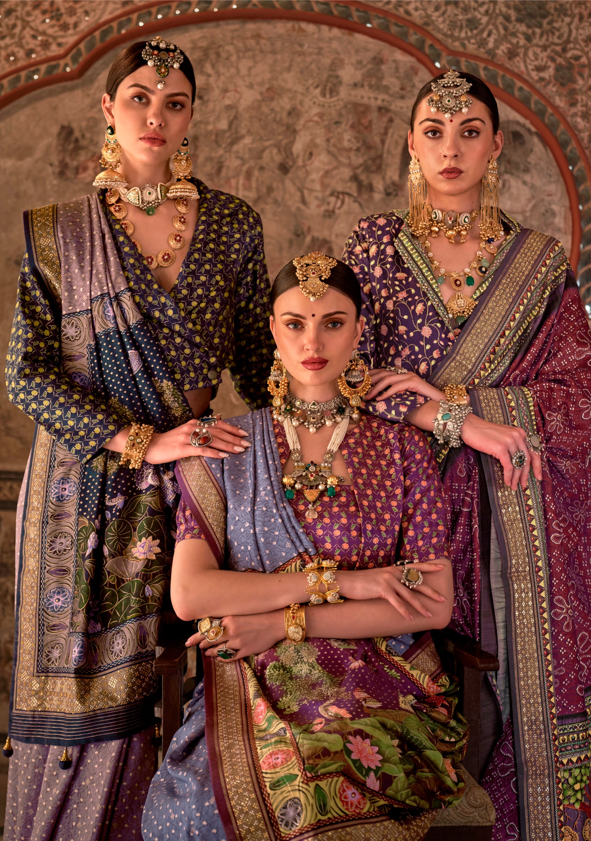 Saree: Poly Viscose Silk With Rajwadi Print & Dew Drop Work With Aqua Finish