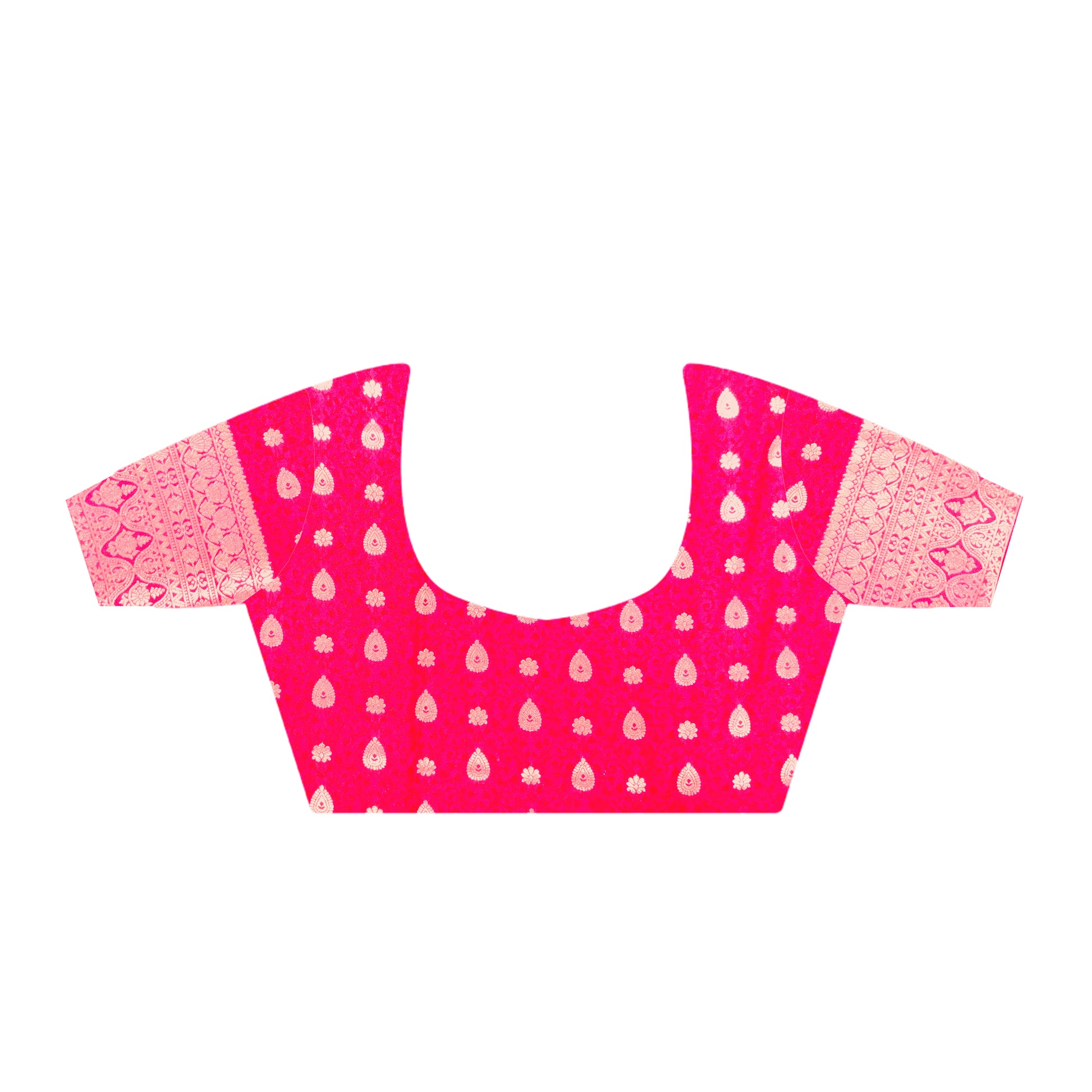 Expertly crafted with a two-tone handloom weaving technique, this brocade blouse boasts a luxurious silk fabric. The result? A stunning, high-quality garment that seamlessly blends style and comfort. Elevate any outfit with this elegant piece.