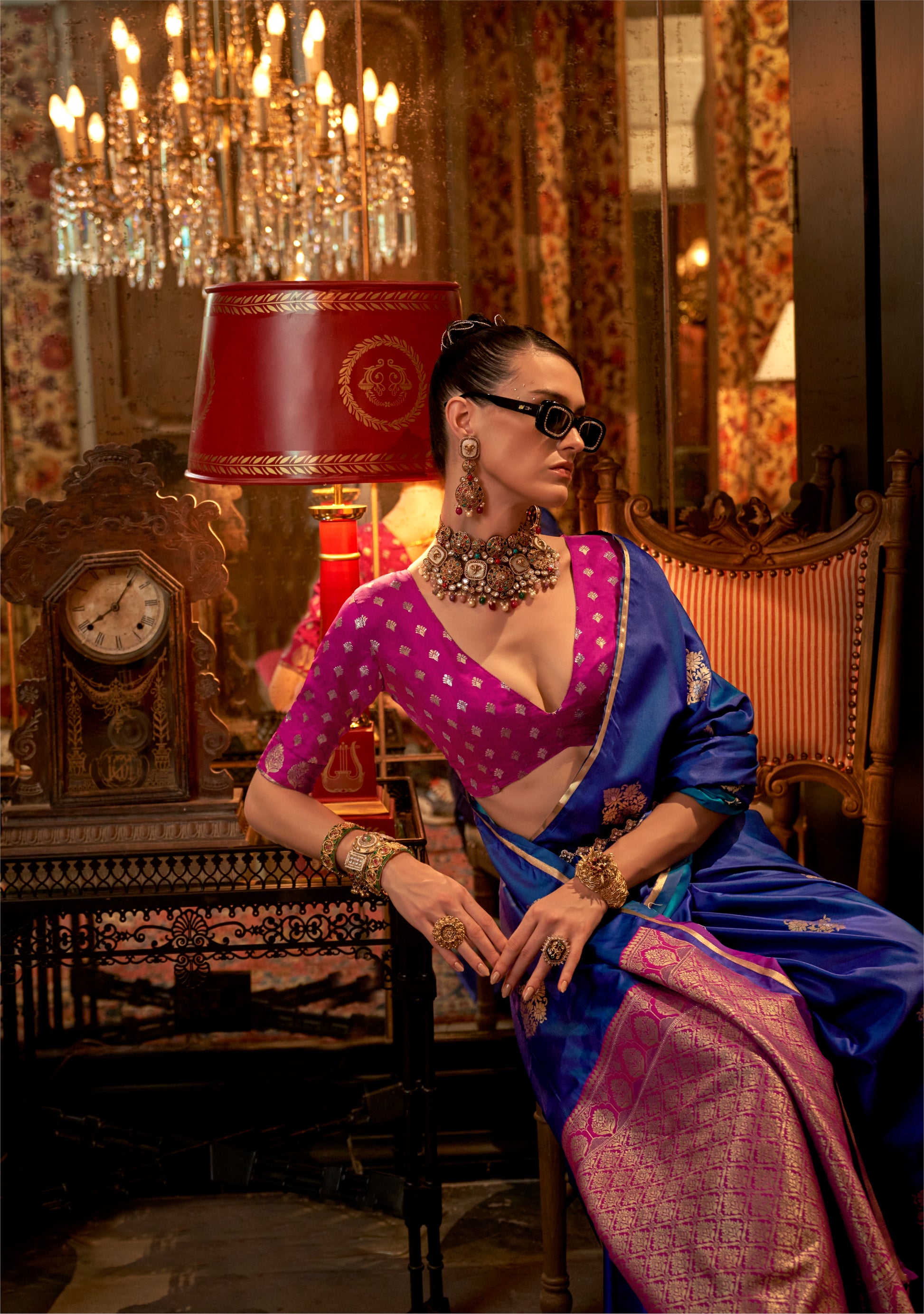 Saree - Blue (Two Tone), Blouse - Pink
