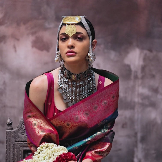 Introducing the Sharini Silk Saree - a luxurious and elegant choice for any occasion. Made with Rangkaat handloom weave silk, this saree showcases the finest quality and craftsmanship. Upgrade your wardrobe with this timeless piece that exudes sophistication and beauty.